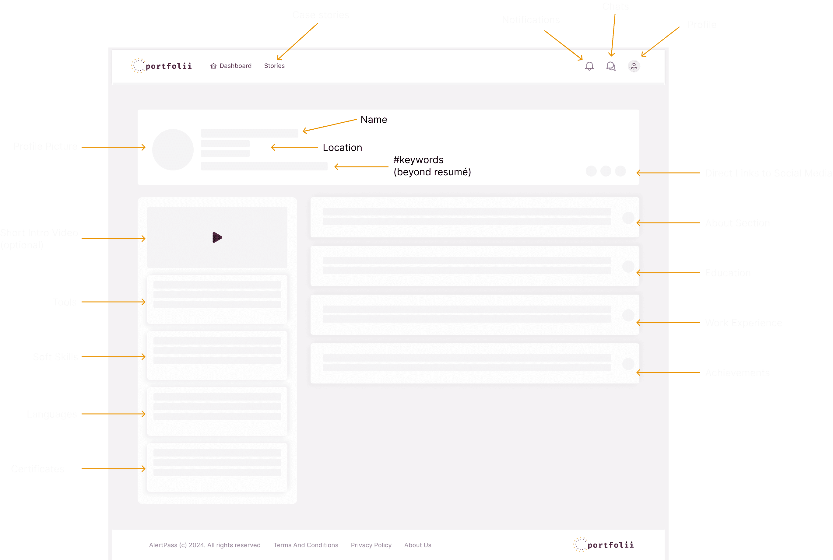Based on recruiter needs and candidate motivations, I created wireframes that prioritize clear self-presentation and efficient navigation. These layouts aim to help recruiters quickly assess skills while allowing candidates to showcase personality and fit.