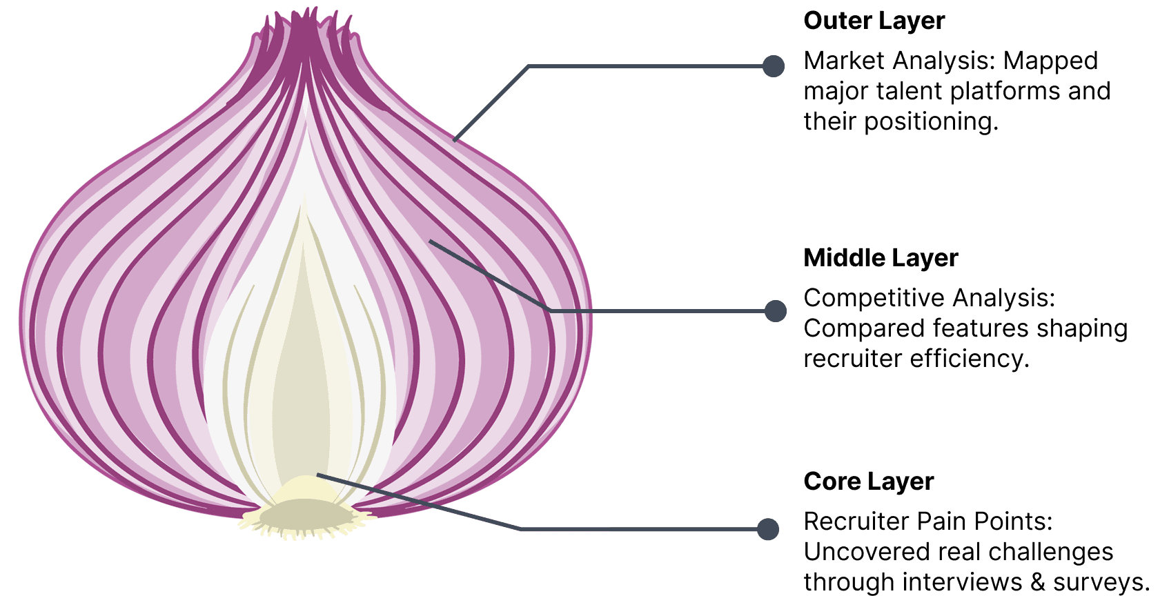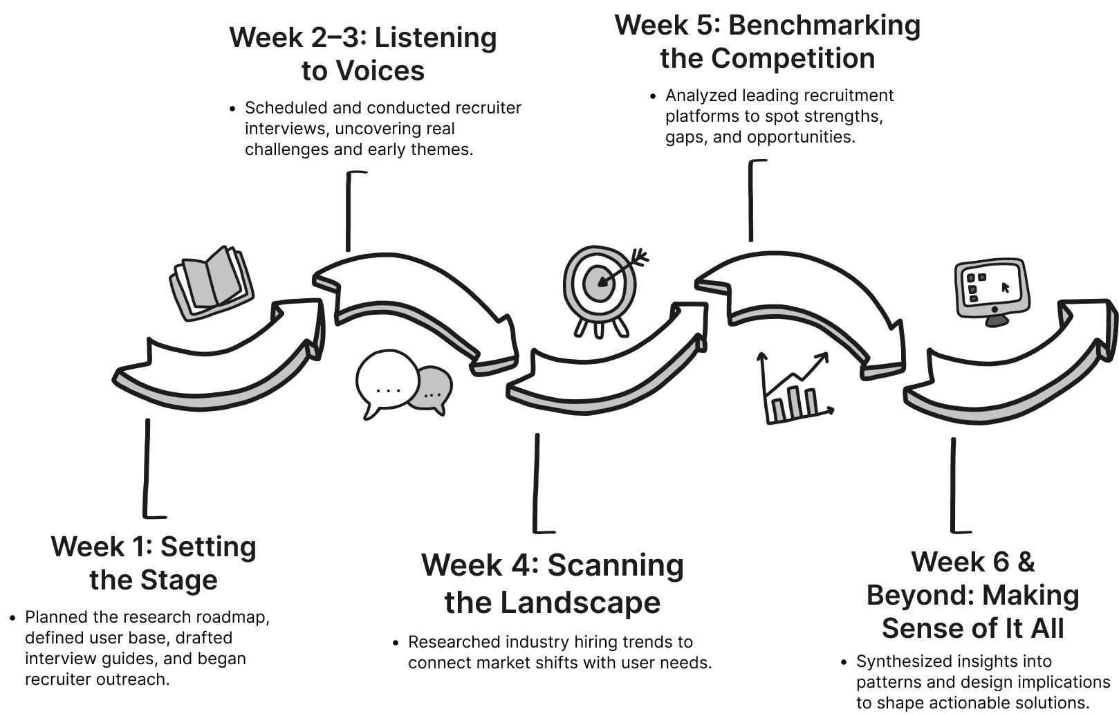 Over 6 weeks, I combined user interviews, market research, and competitor analysis to paint a full picture of recruiter workflows and frustrations.